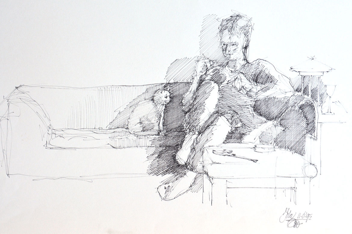 De Uitbeelder tekent ook graag 'vrij op bestelling'. Snelle schetsen van een bijeenkomst of optreden, uw huis, uw huisdier…